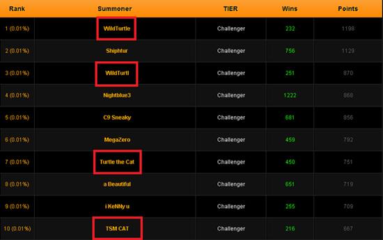 他的英雄联盟技巧毫无疑问,因为现在在王者组前十名中有四个是他的帐号。
