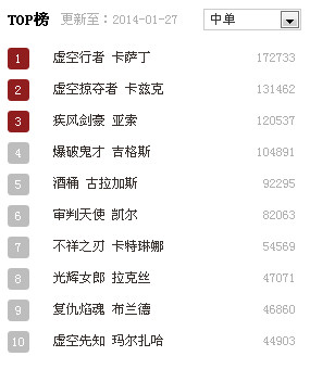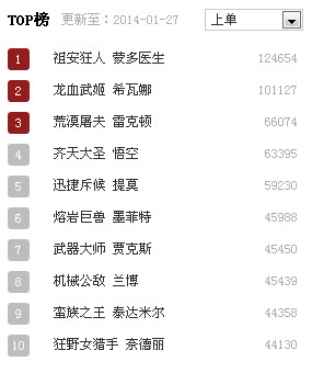 一周TOP英雄榜:龙女跌至第十 螳螂蔚进前五