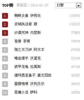 本周伊莉丝从第五名上升至第二名。选取率提高2个百分点,胜率提高0.5个百分点,被Ban率提高11.5个百分点!看来蜘蛛的胜利女神称号要当之无愧了。