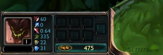 残暴奖励:对区域内的敌人造成40(+0.8AP)的魔法伤害,根据所损失的生命值回复12-75点的生命值(治疗和伤害效果随着雷尔加尔的等级而变化)