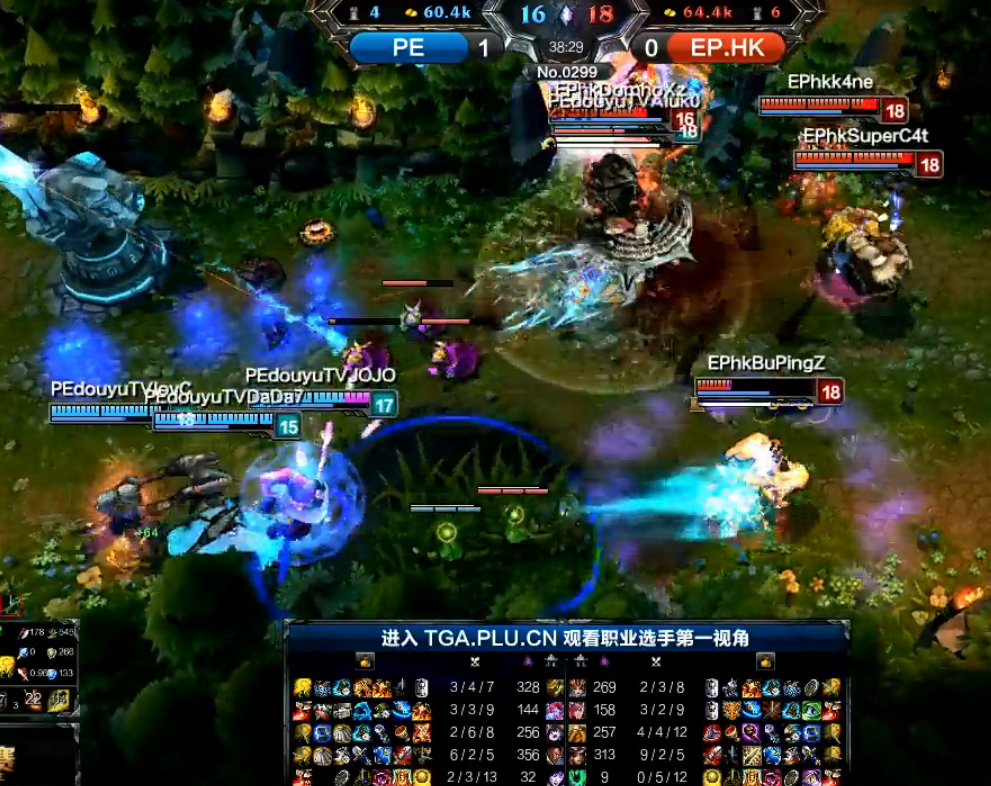 本周最后一日第一场比赛,PE与EP.HK的较量先打头阵,这场本来关注度并不高的比赛,PE却展现了经验充足的野区保护经验。无论前期拿龙之后保护红Buff,还是15分钟野区遭遇战(女坦在河道抓到露露,蒙多传送下来支援,龙女奋身挡技能,牺牲掉了自己保住了露露,露露也在掩护下打出了成吨的输出!双方支援过来,EP大部分技能都交给了龙女,卢锡安也没有及时跟上,EP输出严重不足,这波小团PE以龙女一人换掉EP除卢锡安外四人)。牢牢掌握住小龙刷新时间的PE抓住了对方2波团战失误,建立了极大的团队优势,螳螂超神后,EP已经完全抵挡不住PE的进攻,只能投降。
