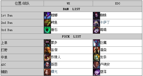 LPL春季赛第六轮WE vs EDG,以下是本场比赛的战报: