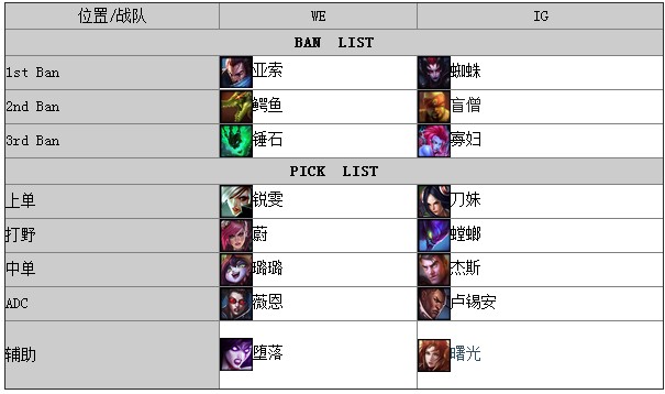 刀妹杰斯奇阵未奏效 IG惜败WE双方战平