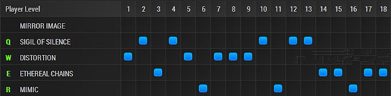 Q技能能给对方施加一个印记,之后对其使用技能会触发额外伤害并沉默目标。前期平A补刀困难的话,可以使用Q技能补刀,Q技能在对线时配合W是骚扰神技推荐副升。