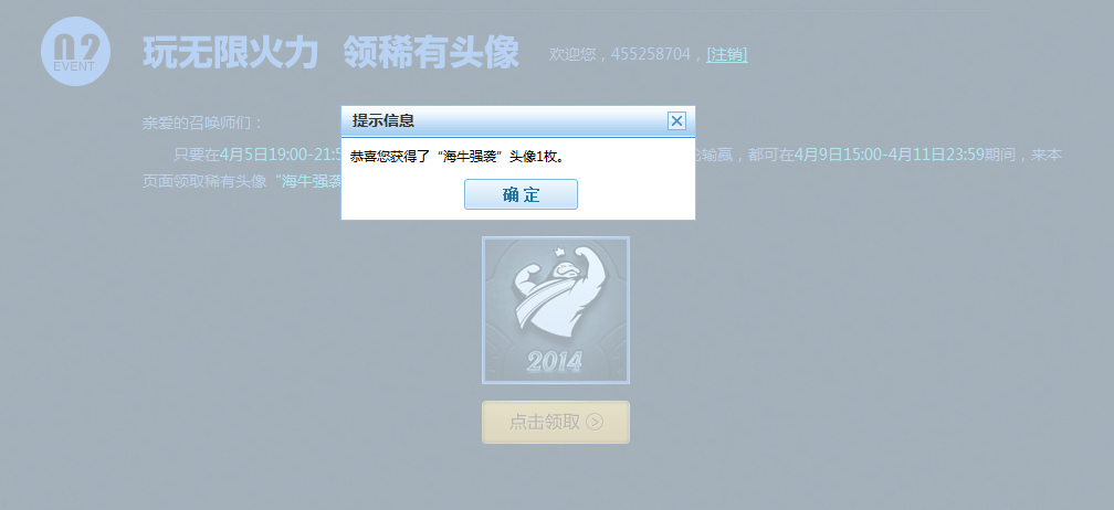 只要在4月5日19:00-21:59进行一局1-5人匹配模式的“无限火力”游戏,不论输赢,都可在4月9日15:00-4月11日23:59期间,来官方网站页面领取稀有头像“海牛强袭”一枚!现在已开放领取,后天截止哦。【点击领取】