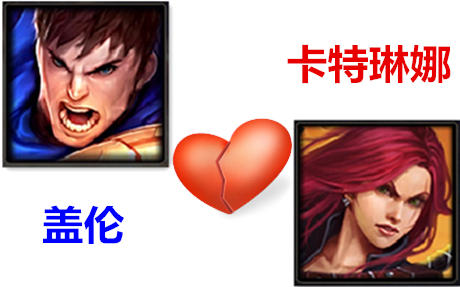 也许是因为错误的翻译,也许是因为两个人本身就不是一对,但是在S2赛季时,这两人一直被玩家们误认为是一对早已订婚的未婚夫妇,慢慢的在老玩家们眼里,盖伦和卡特琳娜已经被默认为是一对老情侣。但诺克萨斯与德玛西亚之间的对立,注定了他们们只能是**的牺牲品,尽管官方早已澄清他们的关系是因为翻译错误,但是还是让我们祝福他们吧,希望他们能如那些自撰小说里的故事一样,安静的在一起。