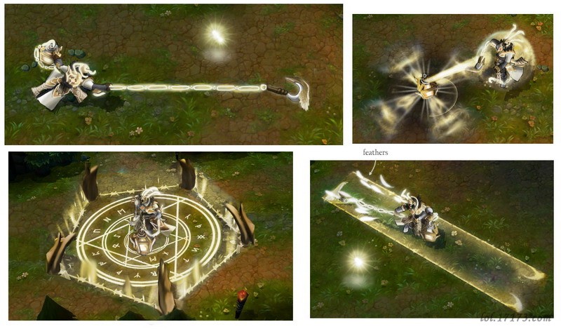 外服锤石爱好者kluukie创作了一组以正派人物为主题皮肤,命名为“弧光锤石”。在该皮肤中,锤石被圣光所笼罩,进行着魂度他人的工作。