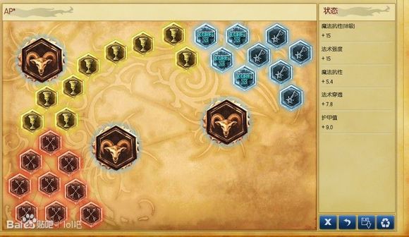 蓝色4个固定魔抗/5个成长魔抗,你可以9个全是固定或者成长魔抗。不过建议是9个固定我个人是喜欢魔抗对半插的。而且往后面走成长魔抗收益也高等级起来后也会比9个固定魔抗要高一点。