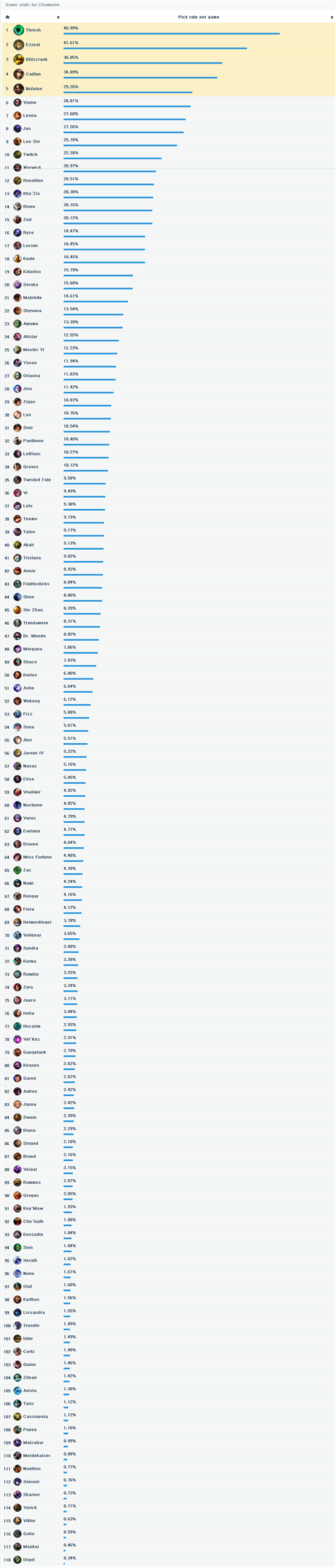 Pick:锤石机器人成玩家新宠,下路EZ力压女警跃居第二!