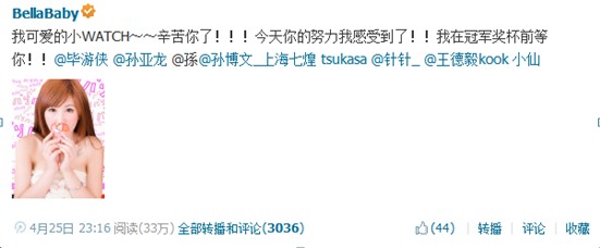 正当笑笑七号掐得不可开交之时,“电竞球王”Bella也发微博表示看好美男选手watch所在的Najin White Shield战队。