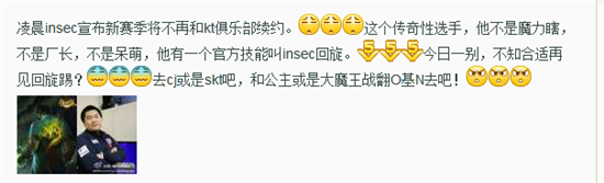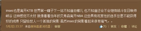Insec的离队或多或少带有悲情戏份,不过仅仅说明了insec的离队,并没有说insec退役,不知道insec是否会加盟其他俱乐部。
