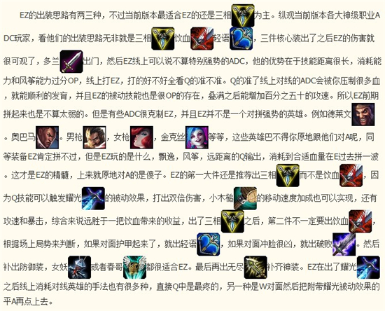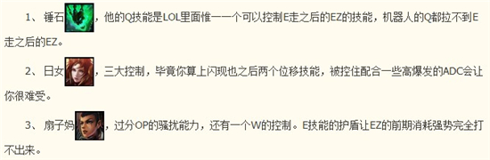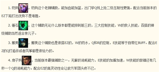 EZ是个灵活多变的ADC,他可以搭配很多辅助。但是有几个辅助是最适合他的。