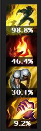 可以看出,有虚弱和惩戒,还有很大比例的眼石出装,说明酒桶现在在外服已经不在单纯走中单了,有辅助和打野的比例。下文将开始各路分析酒桶的存在可能。