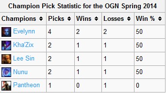 如各位所见,Benji在OGN2014春季赛上使用了4次寡妇,2次螳螂和盲僧还有努努,胜率都是50%;在NLB输给CJ Frost的四场比赛中,用了2次盲僧1次寡妇1次努努;今天在全明星的两场比赛,都用的寡妇。套路很简单:在盲僧被BAN、螳螂被对面抢,或者两者都被BAN掉的情况下,Benji几乎都是用的寡妇。为什么?因为不选寡妇的话,他就只能选努努这种更混的打野了:出个眼石为团队做做贡献,大团加个W吐个口水放个大招就等死。