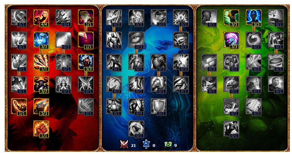 21点的攻击系天赋增强了炮娘前期的伤害输出,炮娘是一个非常费蓝的ADC,所以在通用系中点出三点的冥想略微的补全了缺蓝的短板,点出飞毛腿和召唤师的洞悉提升了炮娘的移动速度、缩短了技能冷却时间。