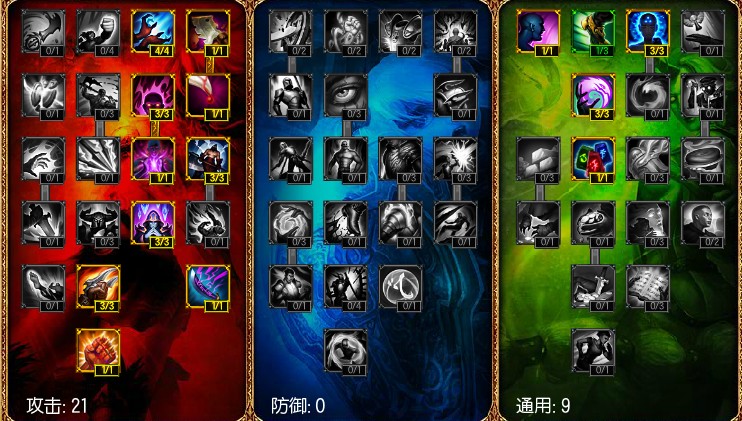 解析:21-0-9传统法师天赋即可,十分适合光女,因为光女的技能释放距离都十分可观,因此,能在安全的位置进行输出,小编认为没有必要点出防御天赋。21点攻击天赋中的双刃剑可以考虑点出,不容易被攻击到的光女十分适合这个天赋,能增加光女的输出。