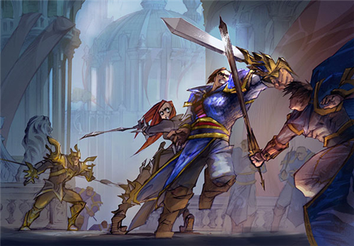 在卡特琳娜突然现身于德玛西亚城内并受到无畏先锋团攻击时,盖伦挺身而出保护了她!