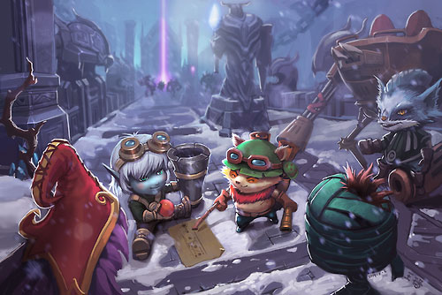 这是LOL里最萌的一对,提莫与小炮都是班德尔城的重要人物,两人分别是班德尔城两大传奇队伍"主舰斥候队"与"麦林突击队"的队长,两位超萌的角色从最开始就是人们心目中的最佳配对。虽然偶尔会传出小炮与兰博的绯闻(查看详细),但却丝毫不能影响两只小萌物在人们心目中的地位。