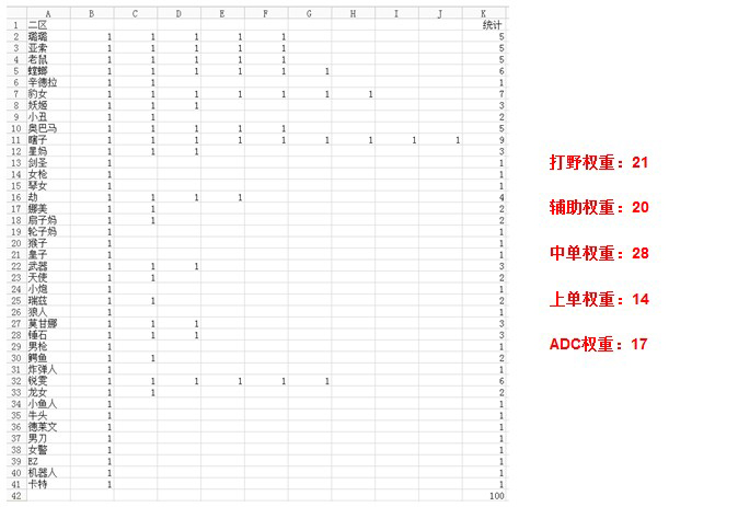 3:由于某些英雄的特殊性,比如瑞兹可以上单也可以中单,妖姬可以辅助,根据少数服从多数的原则把瑞兹划为上单,妖姬划为中单,可能会造成些许误差,忘谅解。
