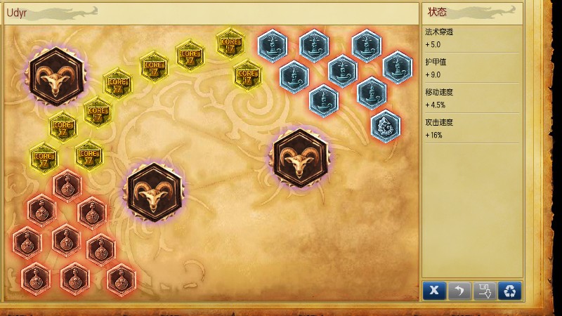 红色攻速,黄色护甲,蓝色法穿,大精华移动速度。蓝色一般不需要带魔抗是因为防御天赋里自带魔抗而且打野前期收到的魔法伤害较少,带魔抗前期没有用处后期符文带来的魔抗也略显不够且魔抗可以用装备补足。如果对方是蜘蛛龙女这种AP伤害较多的打野前期会给你带来较多的AP伤害可以选择蓝色带魔抗。减CD符文不能减少UD技能的公**而且UD6秒的技能冷却本身就不是很长,所以使用冷却缩减符文的价值不是很高。UD手短无位移,所以移速是UD的灵魂,所以符文天赋和装备都应尽可能地增加移速。