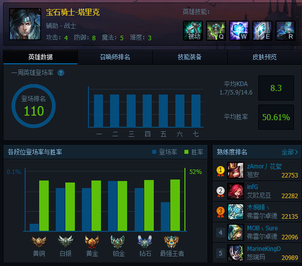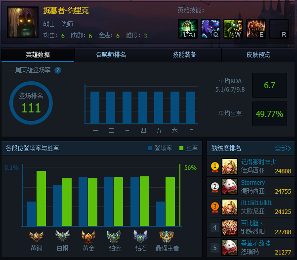从官方统计来看,以下是这周比较冷门的英雄,虽然只是代表这一周,但也很可以证明一下10个英雄在现版本的LOL里面,并不强势或者说是并不受玩家的青睐,下面我将详细介绍一下这些英雄。