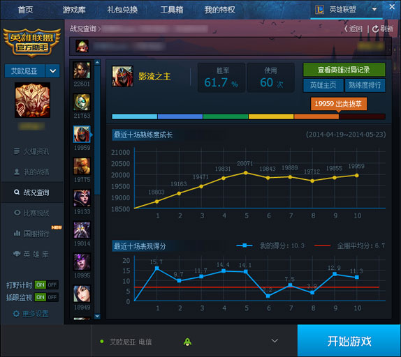 注:目前仅针对2014年起的玩家数据进行分析,如果您在此段范围内使用单英雄未超过十场,暂时无法得到熟练度初值。