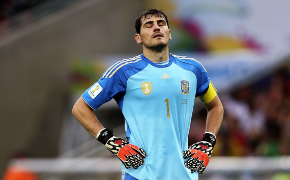 黯然神伤的卡西利亚斯,赛后哭倒在记者怀里久久不能自拔,要知道10年的世界杯,就是这一代门神两次扑出罗本的单刀球,才把沉甸甸的大力神杯抱回了西班牙。