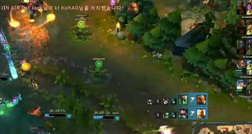 随后不到一分钟,Jin Air蒙多GANK上路,再次击杀传送过来的KTA天使,这样的压力下,KTA的天使已经发育不良,被Jin Air蒙多压着打。