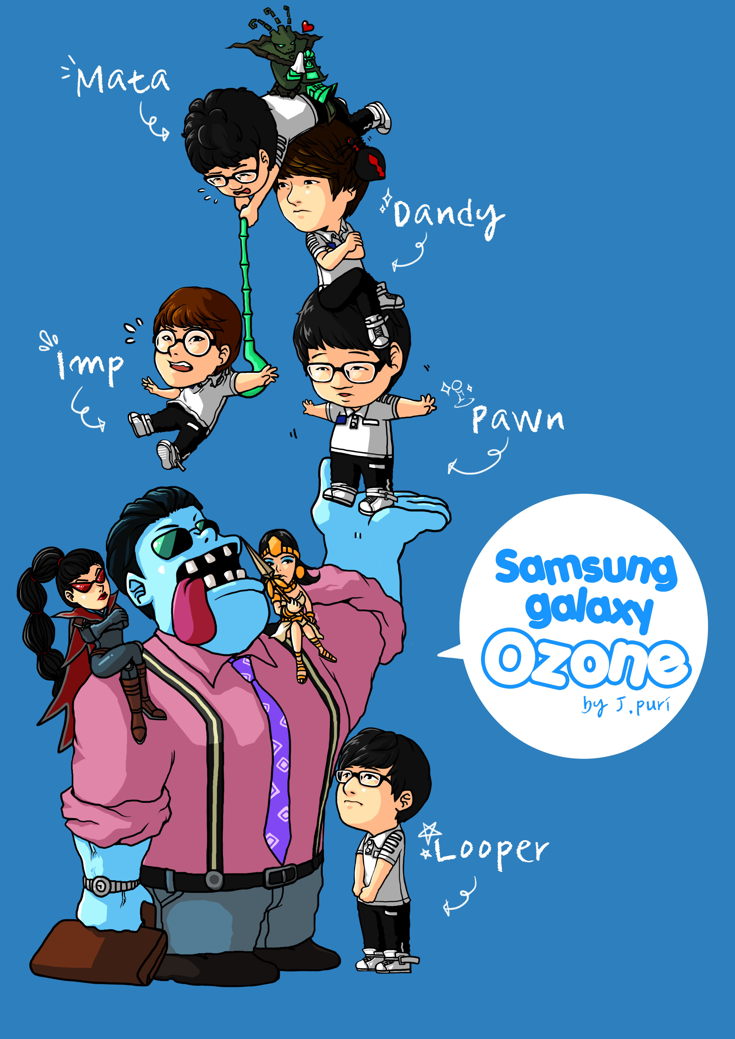 现在韩国英雄联盟中实力最强的队伍是谁呢?相信很多人会选择支配春季赛季的三星Galaxy。现在要给各位介绍的就是三星Galaxy的应援海报,底色是很适合三星Galaxy的蓝色,并且将选手们的特征十分有趣的表现出来。特别是将每个选手的代表性英雄都画了出来,实在是出色的应援海报。