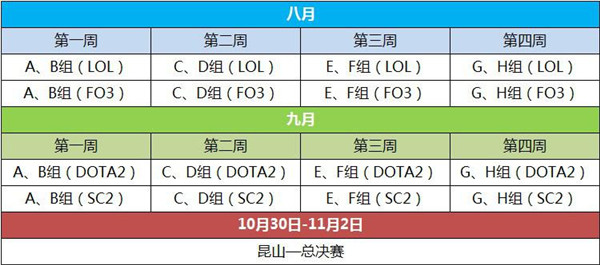 线上赛定于8月4日至9月27日进行,历时8周。总决赛定于10月30日至11月2日在中国昆山举行。昆山是历届WCG中国区总决赛举办地,自从WCG宣布停办的那一天起,业内惋惜声一片,2014年NEST将总决赛地点定在昆山,意味深长,NEST希望用实际行动告诉大家,我们愿意承载着广大电竞人的梦想,再次扬帆起航!