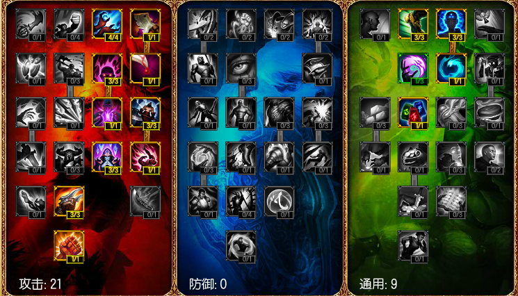21-0-9的传统中单法师天赋十分适合蛇女,21点的天赋中可以点出屠夫与盛宴,增加蛇女前期平A补刀的能力,在Q技能等级没有起来之前,想要清线还得需要平A才能保证补刀发育,盛宴的回蓝配合多兰戒能够保证蛇女前期的续航。9点的通用天赋中,移速对于蛇女来说效益不错,小编比较喜欢点出移速,回蓝和蓝量对于频繁释放技能的蛇女来说十分重要。