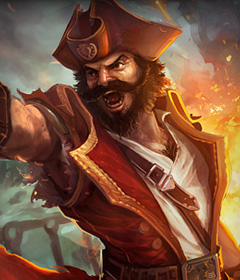武器大师线上能力不弱,后期有很强大,是个难缠的角色,船长和他对线还是利用Q技能消耗血线,不要尝试着和他打一波,赢得几率比较小,武器的大招加W爆发还是很高的,况且还有眩晕格挡普攻。