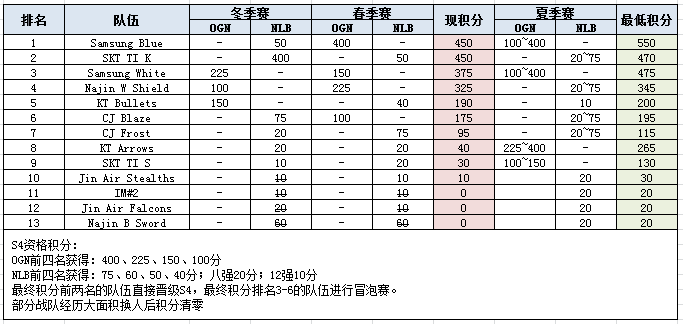 目前还奋战在NLB和OGN上各大韩国战队S4积分