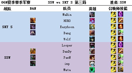 OGN夏季赛季军赛 SSW兵不血刃3:0击溃SKT S