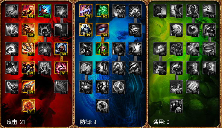 布隆在1V1中非常重要的一个属性就是攻击速度,所以在进攻的第一层中,点满攻速会起到意想不到的效果,另外布隆技能和普通攻击的比重都很重要,建议双编织都点满。最好死神,毁灭6%的双穿透,末日浩劫等天赋都能极大提升布隆的输出能力。
