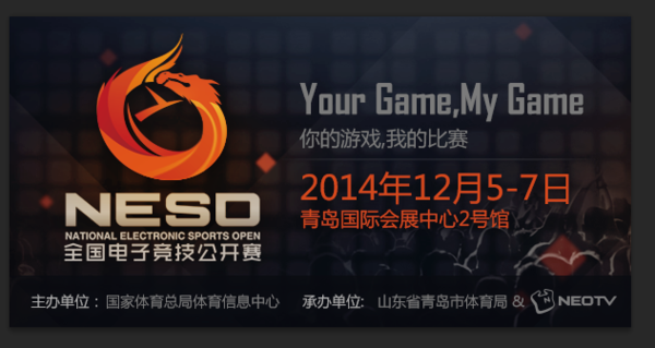 NESO作为年轻人唱主角的大戏,将于2014年12月5-7日,青岛国际会展中心2号馆引爆最终决赛,点燃电子竞技玩家的激情与梦想,让我们共同期待电子竞技饕餮盛宴。NESO必会初现峥嵘,将会带来具有里程碑意义的非凡感官体验、留下浓墨重彩的鲜活烙印,让我们拭目以待!