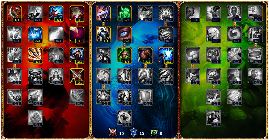 如果你对对线的英雄没有把握,心里很虚的话,用15-15-0这一套天赋也是可以的,或者对线法师英雄时用这一套也可以,因为法师英雄基本都是远程,在补刀的同能可能会用技能和平a一直骚扰你,使你很烦。这一套符文可以减少平a的伤害和魔法伤害。而且这一套符文并不会使潘森前期的伤害减少很多,用这一套符文的潘森前期一样很暴力,而且法师消耗你也不是很疼。