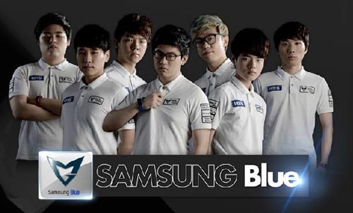 Samsung Galaxy Blue 队伍原名为 MVP Blue,此队伍在 2013 年 9 月时与兄弟队 MVP Ozone 一同被三星电子收购并且更名,而 2014 年的 Samsung Galaxy Blue 可为脱胎换骨,在第三季世界赛后的重组让他们在 WCG 韩国预选赛击败了当时的王者 SK Telecom T1 K,新加入由 Woong 所指导的中路选手 PawN 更是当时第一个打破 Faker 金身的男人。然而春季赛教练团队却决定将 Samsung Galaxy Blue 与 Samsung Galaxy White 的中路选手对换,而这个充满争议性的决定在春季帝王「Dade」踏着浪人(亚索)脚步带领 Samsung Galaxy Blue 夺下春季 OGN 冠军时,就已经宣告 Samsung Galaxy Blue 的时代已经降临。即使在夏季中最稳定的 Samsung Galaxy Blue 被波动最大的 KT Rolster Arrows 带走冠军,但在各国选手眼里,Samsung Galaxy Blue 绝对是第四季世界大赛舞台上最不想遇到却也最想击败的敌人,而目前没有任何国际赛经验的 Samsung Galaxy Blue,想必也希望在第四季世界大赛中打出精采表现,让全世界的召唤师们永远记住他们的名字!