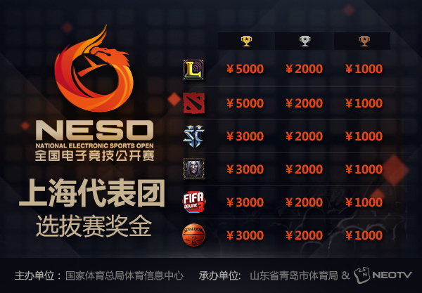 12月,NESO全国总决赛将在青岛拉开序幕。为了一年一度的电竞盛会,各省、市体育局正在全力组建自己的代表队。上海市作为全国电子竞技中心将于10月18日开始对上海地区报名选手进行选拔,上海市体育局为此做了细致的准备。为期四天的比赛将会选拔出最终的上海市代表团将于12月5-7日前往青岛国际会展中心出征NESO全国电子竞技公开赛全国总决赛。NEOTV将会对上海代表团选拔赛进行全程直播。