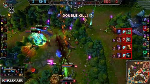 皇族在蓝色方,EDG在紫色方。