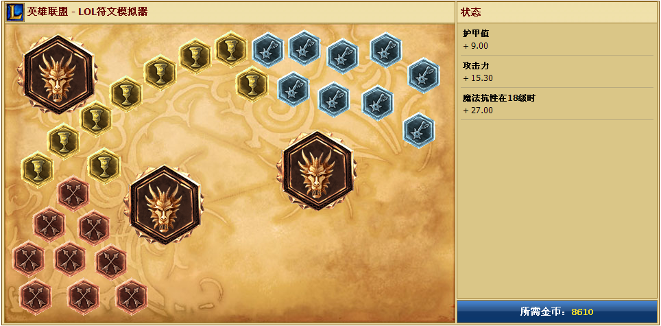 现在的主流阵容就是多ap阵容,如果对面ap英雄很多的话,就把蓝色都换成成长魔抗,中后期不至于被控制住一套秒杀。其余的符文不用变。