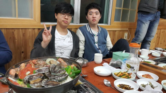 ▲吃完午饭 打个游戏吧HoRo & Faker & Bang