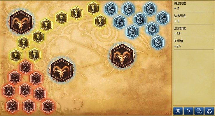 红色带上法术穿透,末日属于法系辅助,法穿自然是最适合的红色符文,因此必带,黄色带上固定护甲,护甲是下路必须的属性,没有什么好说的,必带。蓝色带上魔抗,末日是一个开着大招跳进敌人阵营中的伪前排辅助英雄,因此需要足够的魔抗来保证不会在跳进去的瞬间就被敌人的aoe魔法伤害秒杀,紫色精华部分,带上法强,能够增加末日的E技能和大招的伤害,十分不错的精华。