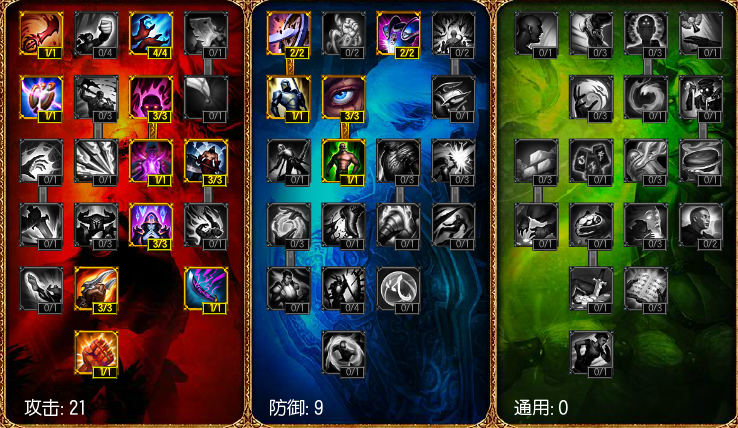 21-9-0的法师型辅助天赋十分适合末日,末日的大招在中期能够造成很不错的伤害,因此21点天赋点在攻击中的法师天赋,第一排的冷却时间必点,能够减少末日恐惧和大招的时间,死神天赋也十分好用,在残血的敌人身上威胁十分大。窃法之刃也可以考虑点出,末日在前期主要依靠平A和E技能进行消耗,窃法之刃能够增加一些输出,9点点在防御天赋中,而不是通用的回蓝中是因为,小编认为末日是一个十分脆皮的英雄,点出防御天赋能够很大程度保证末日不会被秒,而通用回蓝的对末日来说并不是十分重要,末日只要不频繁释放技能,就很难会出现空蓝的现象。因此小编建议21-9-0的天赋点法。