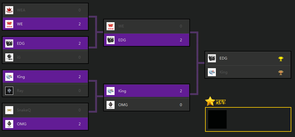 而在稍后,也就是11月2日的下午15:30,EDG即将与刚刚战胜OMG的King争夺冠军。