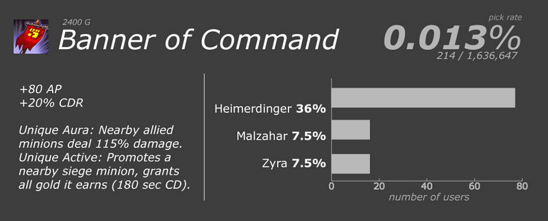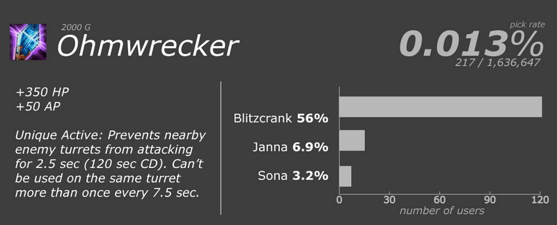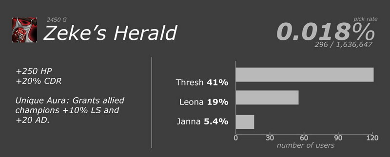 点评:这件装备对于辅助来说还是不错的,尤其是在队伍有很多AD英雄的情况下,但它的合成方式有些坑爹,需要吸血鬼节杖,对于辅助来说,前期出吸血杖基本是没用的。