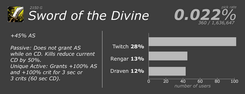 点评:这件装备在冷却阶段是没有攻速加成的,使用不当的情况下,等于让自己损失了被动加成,这种惩罚方式也太严厉了,因此冷门也就不意外了。