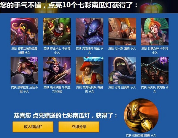 2014万圣节活动 点亮南瓜灯得限定皮肤