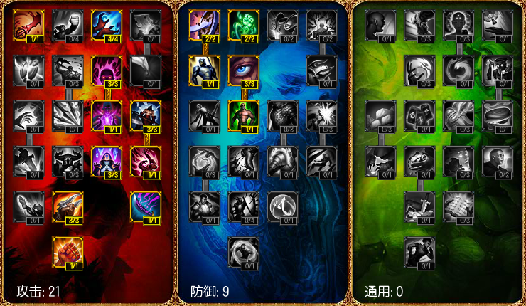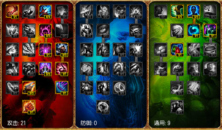21-9-0的天赋在对抗物理型中单刺客的时候十分的好用,21点攻击天赋没有太大的区别,剩下9点点在防御中,抵挡敌人的平A伤害,还能够增加维克多的生命值,提高维克多的生存能力。