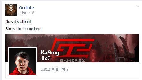 Gamers2中单ocelote爆料Kasing将作为辅助加入